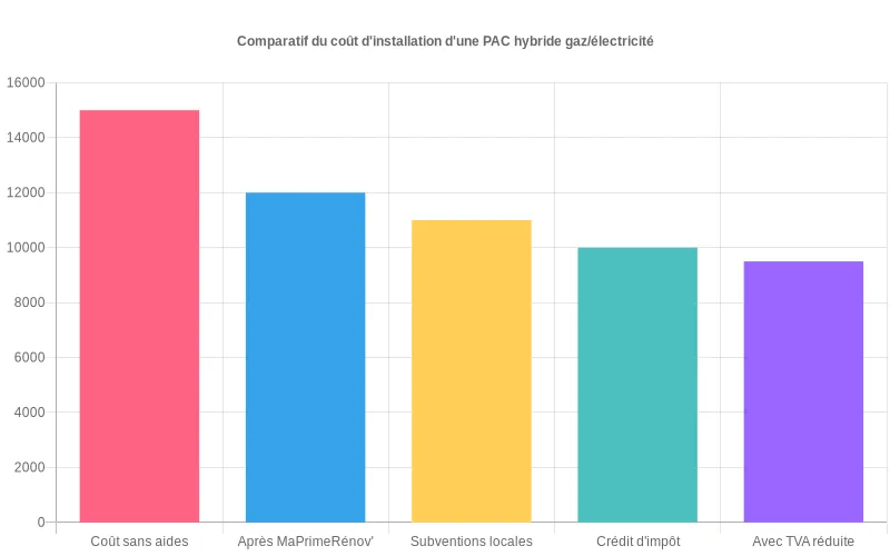 La fiscalité offre également des avantages substantiels pour l'installation d'une PAC hybride. Premièrement, la TVA réduite à 5,5% s'applique aux travaux d'installation réalisés par des professionnels certifiés RGE (Reconnu Garant de l'Environnement). Cette réduction représente une économie immédiate non négligeable. De plus, certaines aides financières rénovation énergétique peuvent se cumuler, comme le montre ce tableau comparatif :